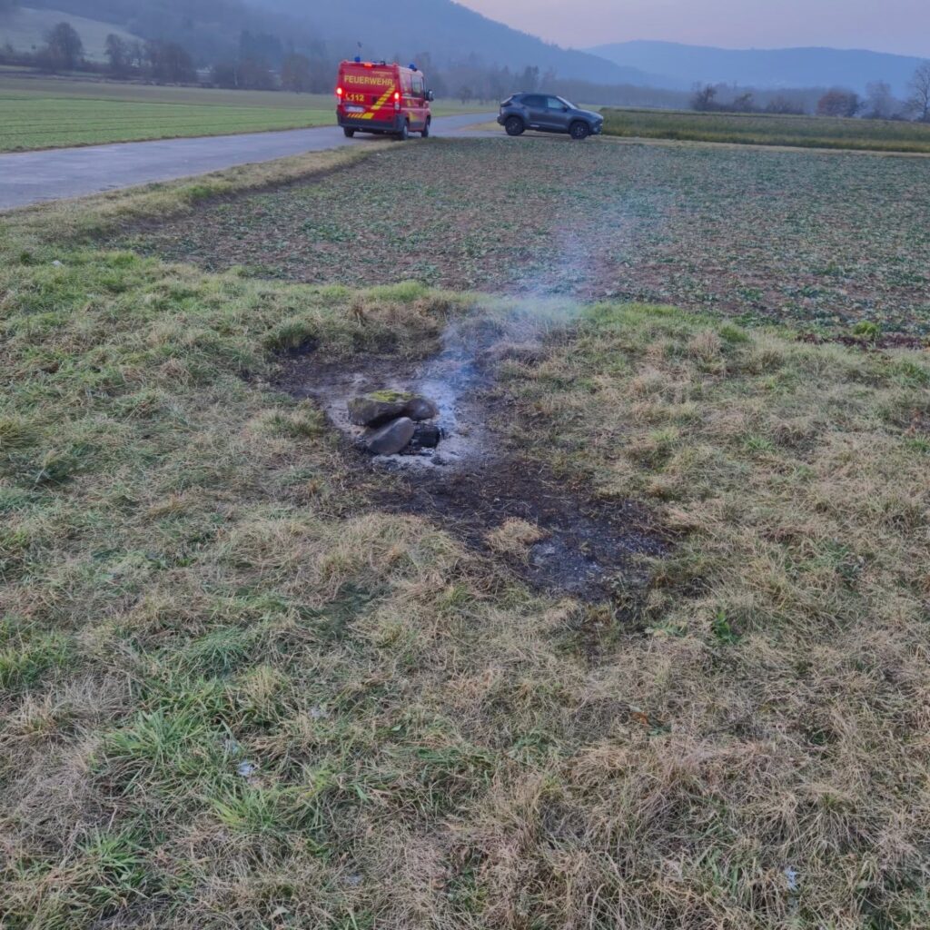 Heute wurden wir zu einem Kleinbrand auf einer Wiese am Fahrradweg Richtung Laudenbach alarmiert.