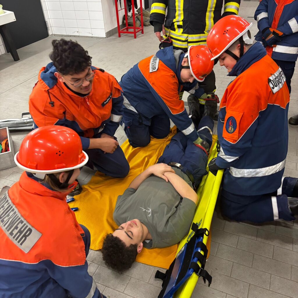 Am 30.01.2026 trainierte die Jugendfeuerwehr Kleinheubach den Umgang mit Tragen und die Menschenrettung.